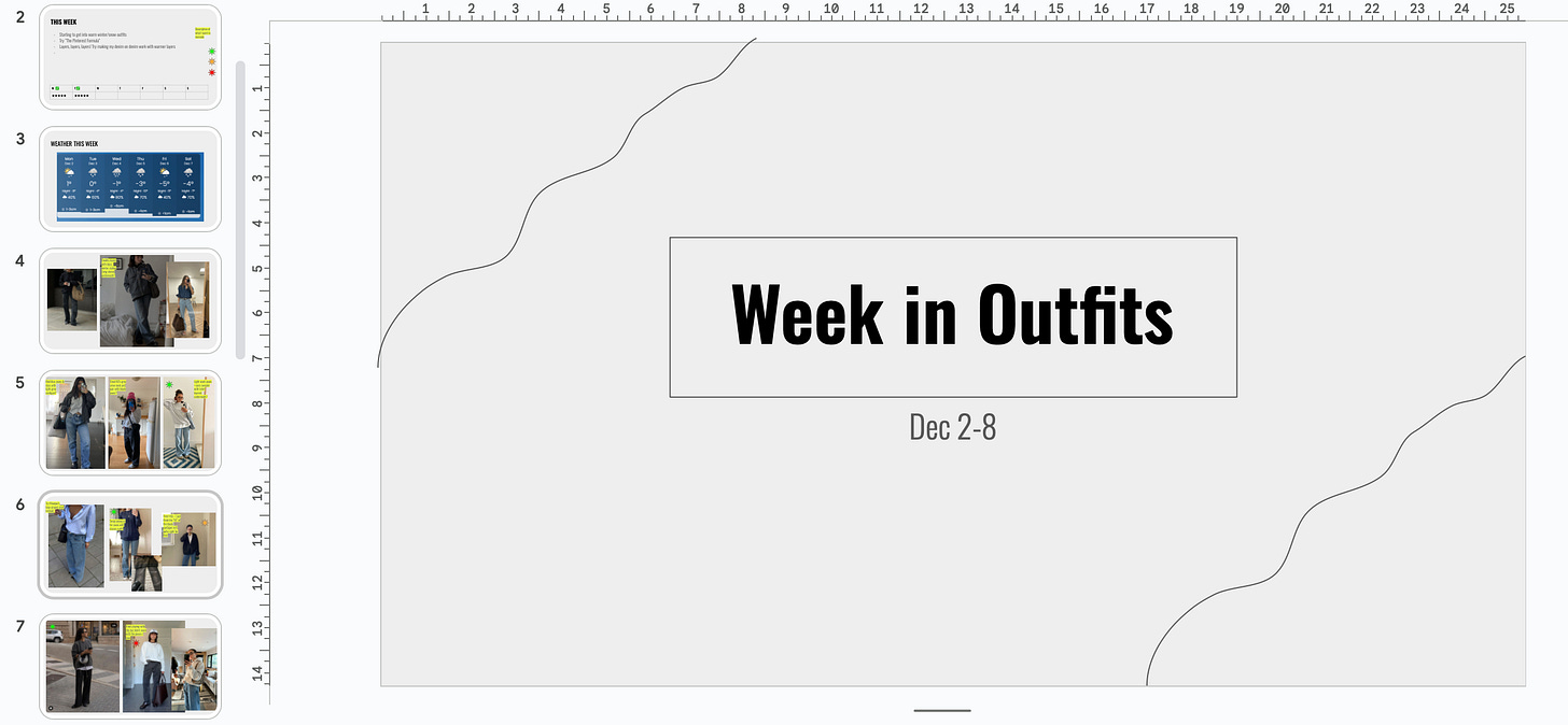 This takes time so I would actually plan out a lot of outfits I wanted to “try” on the weekends so that in the mornings getting dressed was a little easier. I even have a weekly set of google slides where I curate inspiration photos and plan what I’m wearing every week (yes I’m a bit of a nerd but I’ll share this with you all soon because I know there are other nerds like me out there).